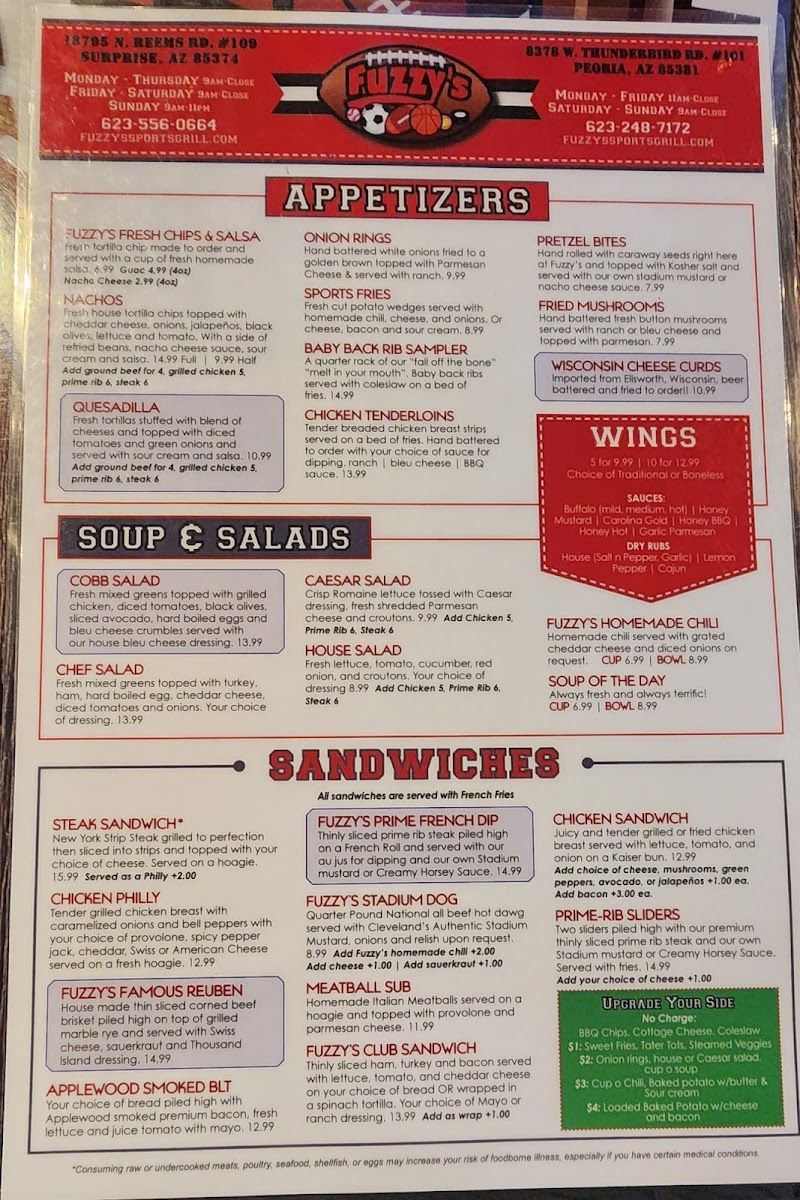 Welcome to Fuzzy's Sports Grill, a gem nestled in Surprise, Arizona, where flavor meets fun. This vibrant spot serves up a menu that's a fusion of hearty American classics and spirited dining.