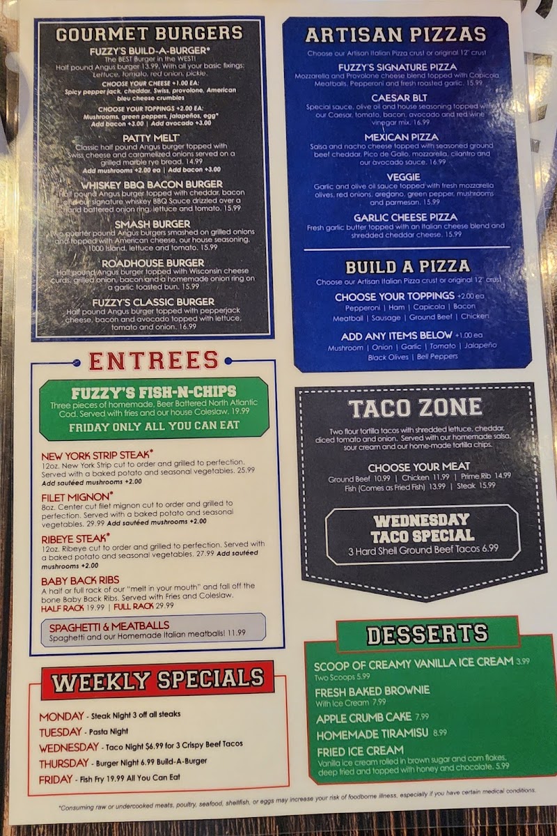 The atmosphere at Fuzzy's is lively and welcoming, making it the perfect place to unwind. With delicious food, refreshing drinks, and the thrill of events like free bingo nights, your experience here is sure to be memorable!
